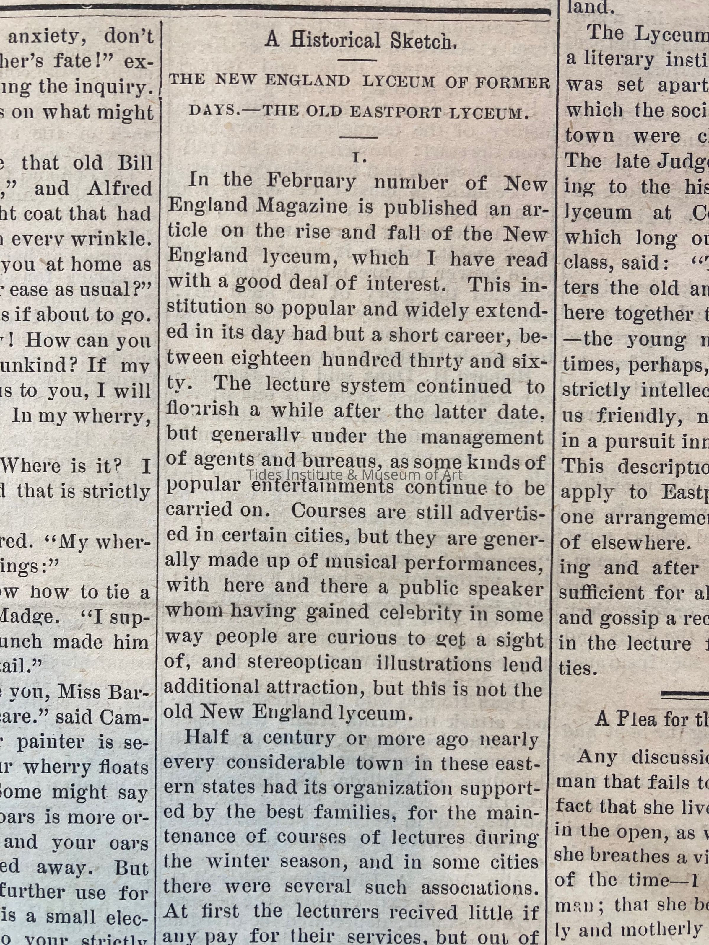 History of the Eastport Lyceum | Quoddy (William Henry Kilby)Description