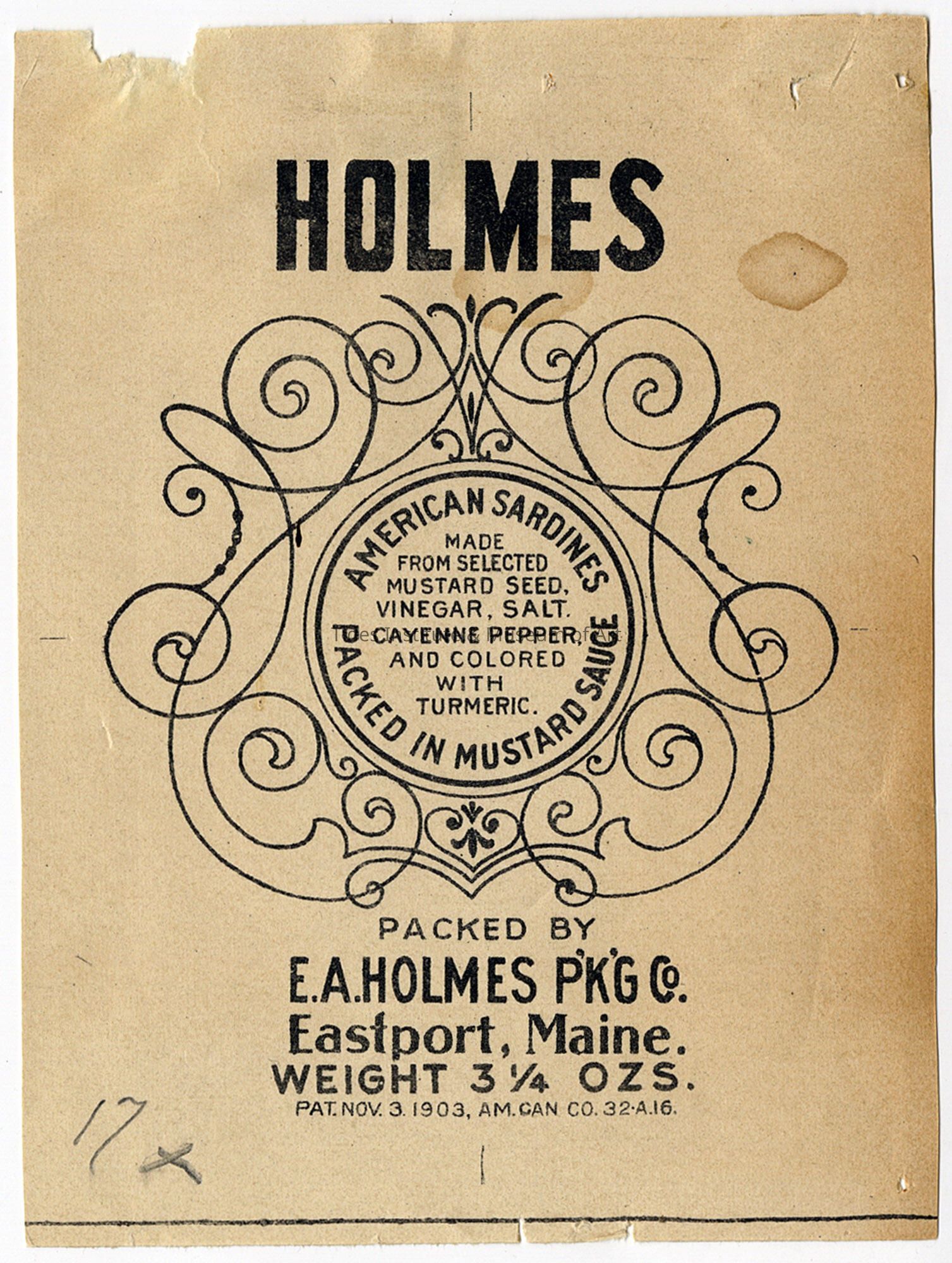 Old Accession Number: 798 Circa: 1903 Description: Packed By E.A.Holmes P’K’G Co. Eastport, Maine.