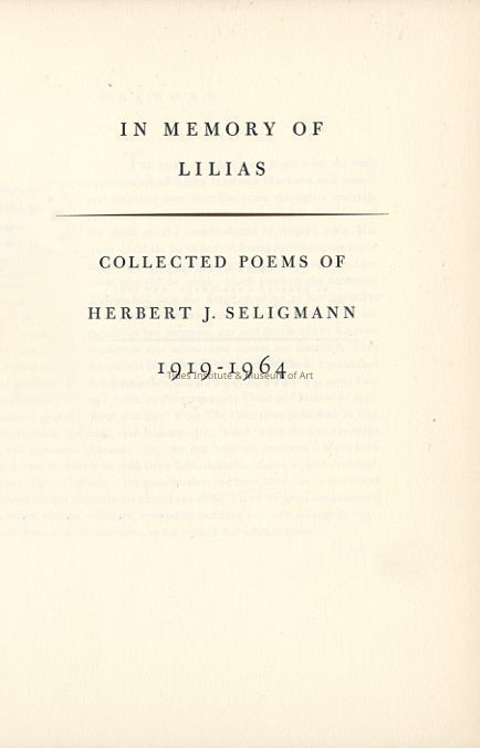 In Memory of Lilias: Collected Poems of Herbert J. Seligmann, 1919-1964