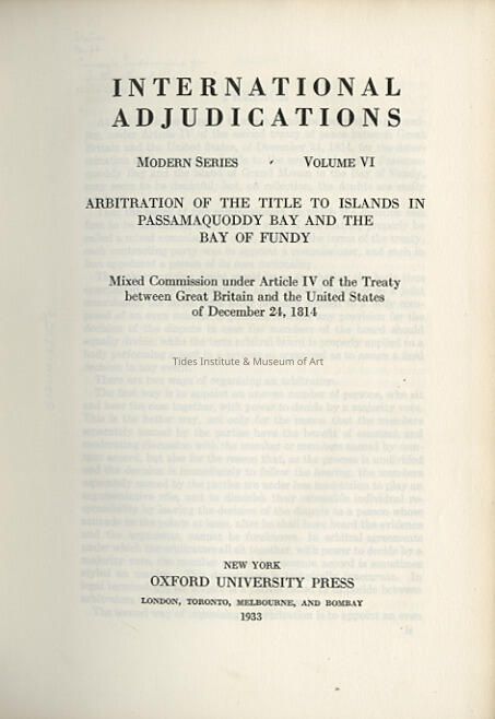 International Adjudications, Modern Series, Volume VI: Arbitration of the Title to Islands in Passamaquoddy Bay and the Bay of Fundy, Mixed Commission under Article IV of the Treaty between Great Britain and the United States of December 24, 1814 | Edited by John Bassett MooreDescription