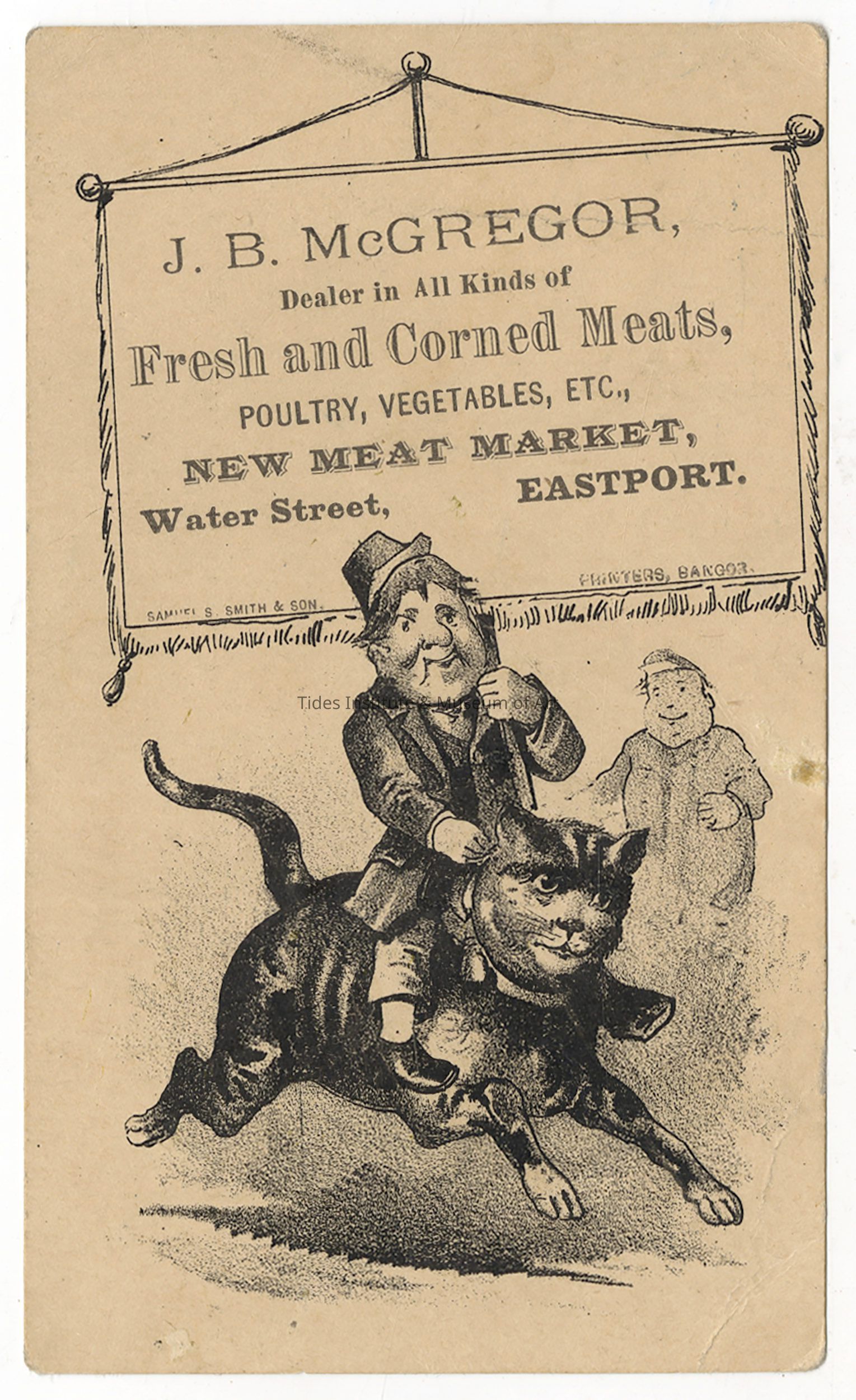 J. B. McGregor, New Meat Market | Eastport, Maine | Trade Card | Samuel S. Smith & Son, Printers, Bangor