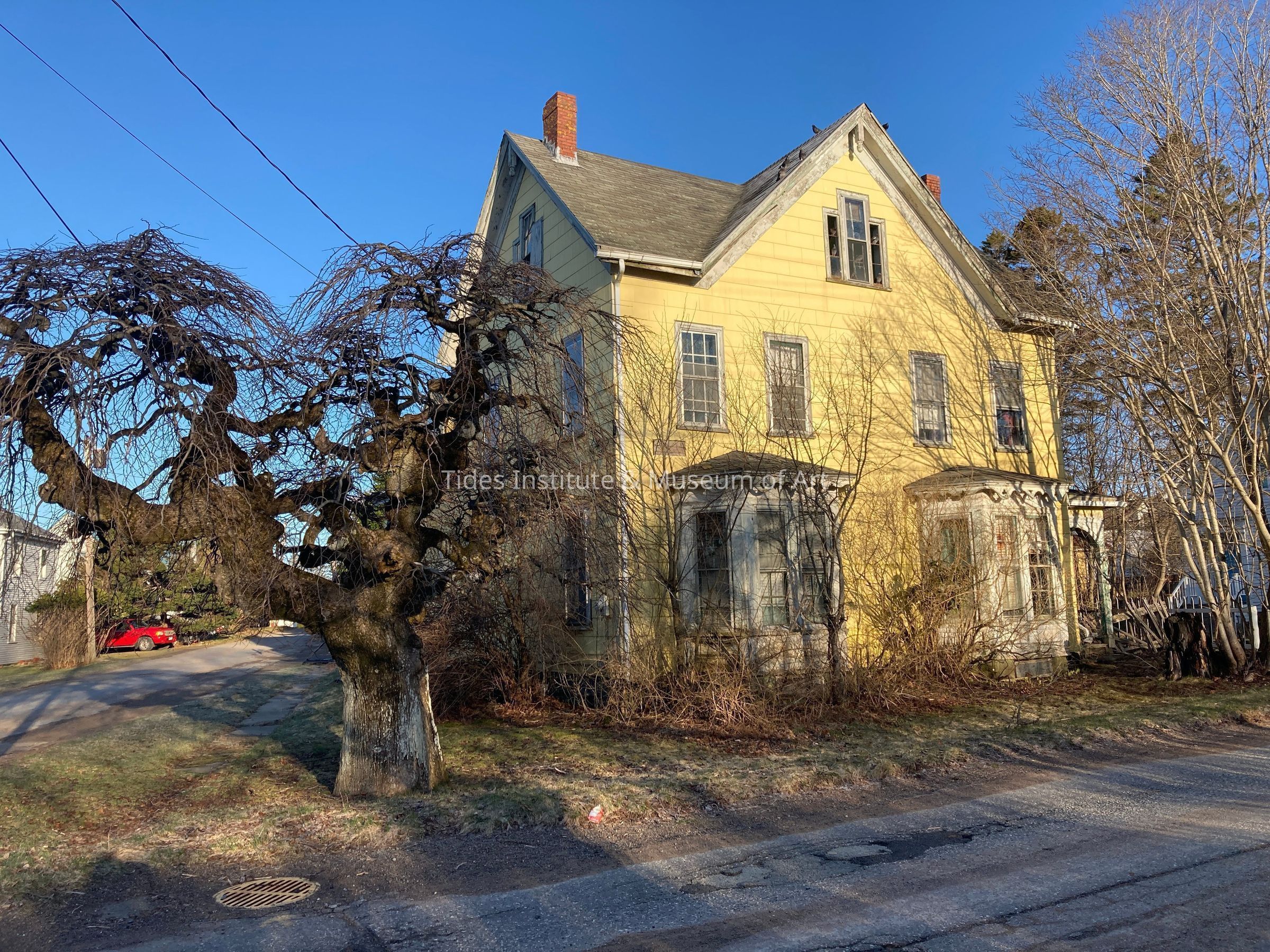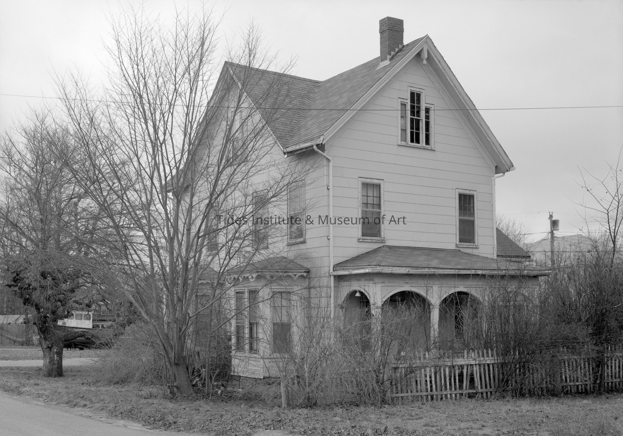 This two and half story wood frame early Italianate style house was built in 1853. A drawing of it appears on an 1855 map of Eastport with the title of “Residence of Joseph Anderson Jr.” The original front door has been moved to a later porch addition on the north side of the house. Two later 19th century bay windows now occupy the first floor of the four bay front facade. The house has a gable roof projecting at the end of each side of the house. A Camperdown Elm tree has long stood at the southeast corner of the house.