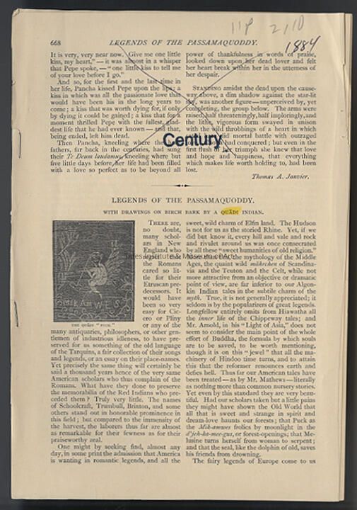 Legends of the Passamaquoddy | Charles G. Leland | The Century Illustrated Monthly Magazine, September, 1884, pp. 668 - 677