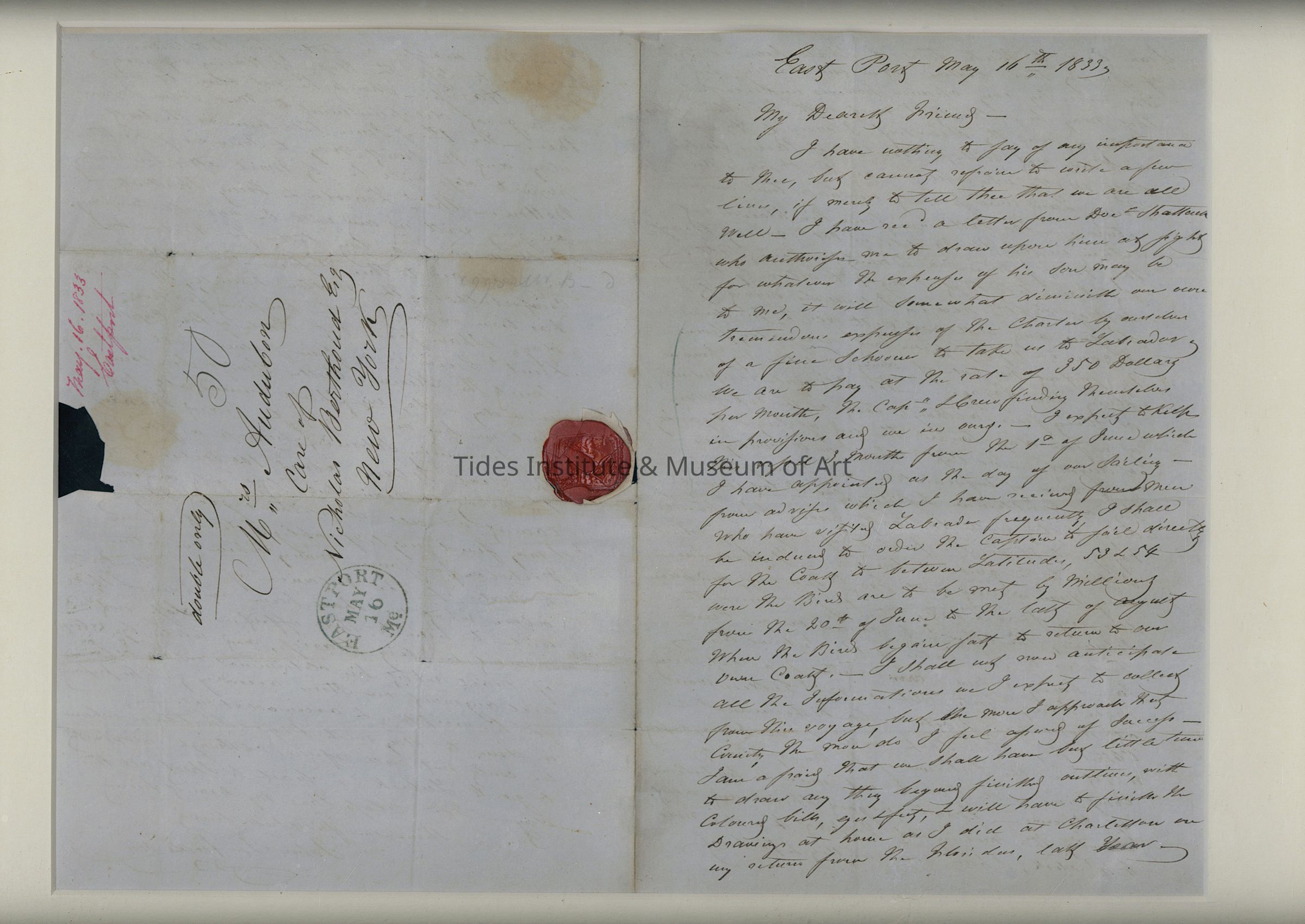Letter from John James Audubon to his wife written from Eastport, Maine | John James Audubon | May 16, 1833Description