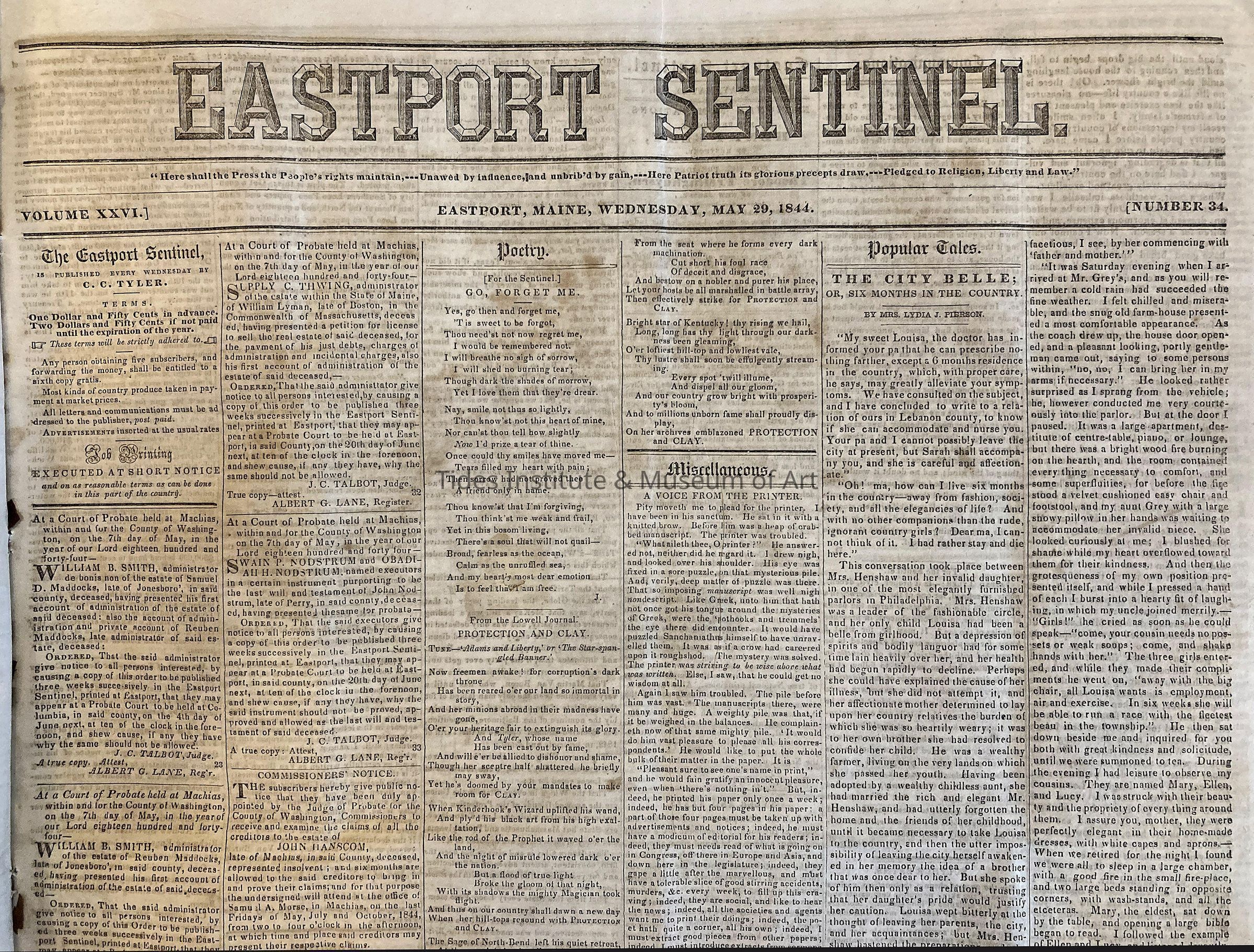 List of original Eastport (Maine) Sentinel newspaper volumes in collections of Tides Institute & Museum of ArtDescription