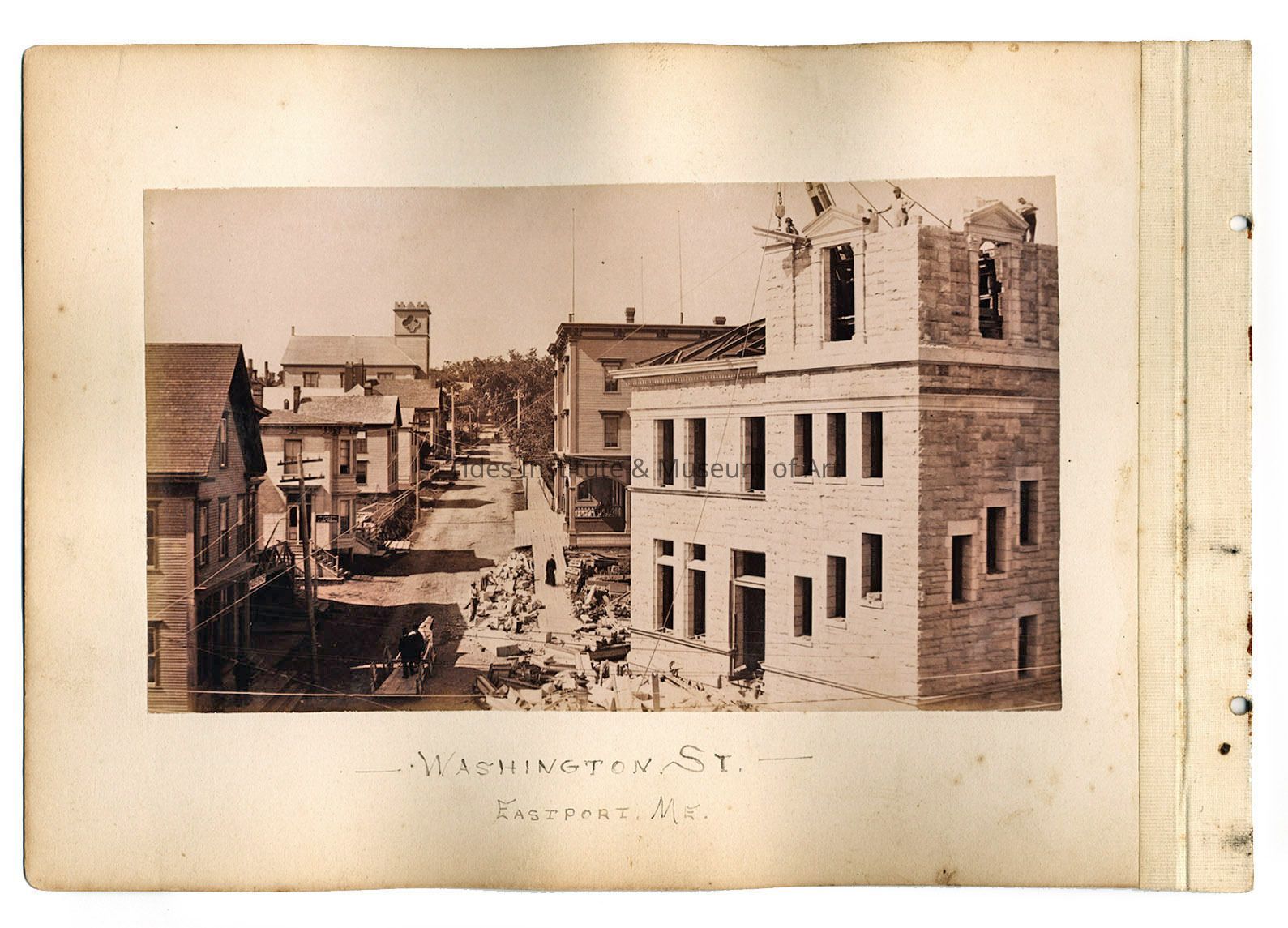 View up Washington Street from Water Street, Eastport, Maine while the U.S. Custom House & Post Office was undergoing construction in 1890-1891.