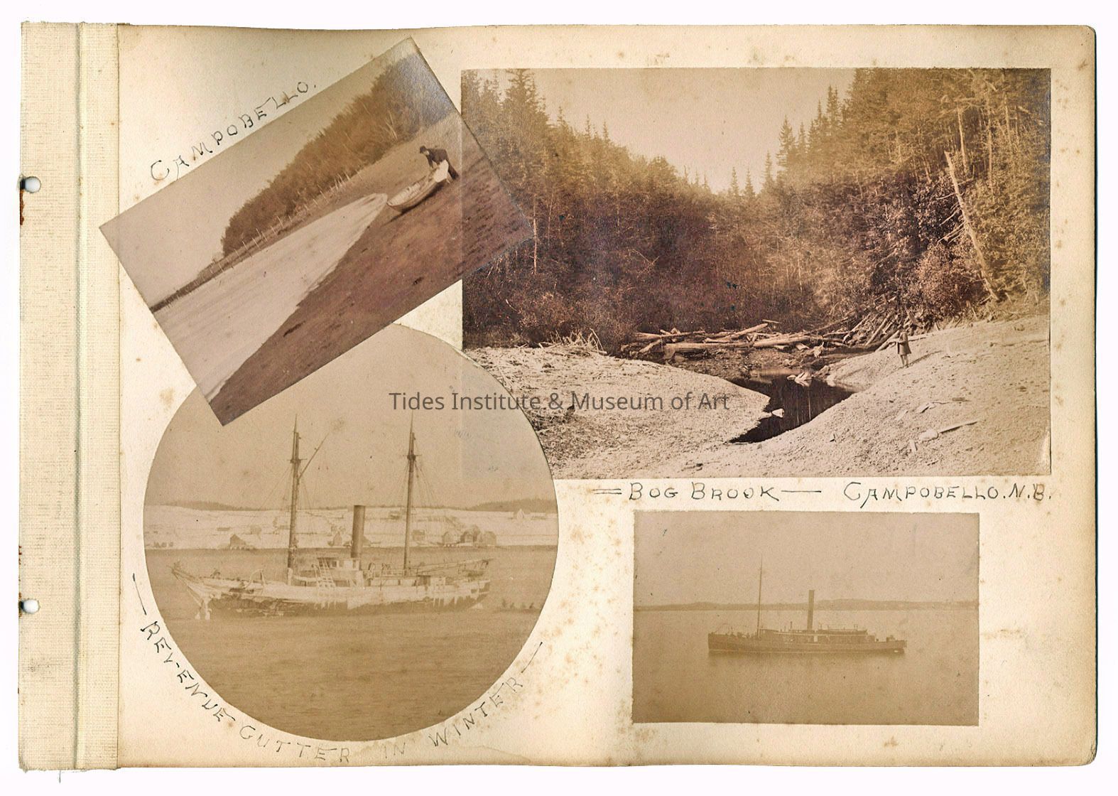 Clockwise left to right beginning with upper left: 1) Campobello Island, New Brunswick; 2) Bog Brook, Campobello Island, New Brunswick; 3) unknown steamship; 4) Revenue Cutter in Winter.