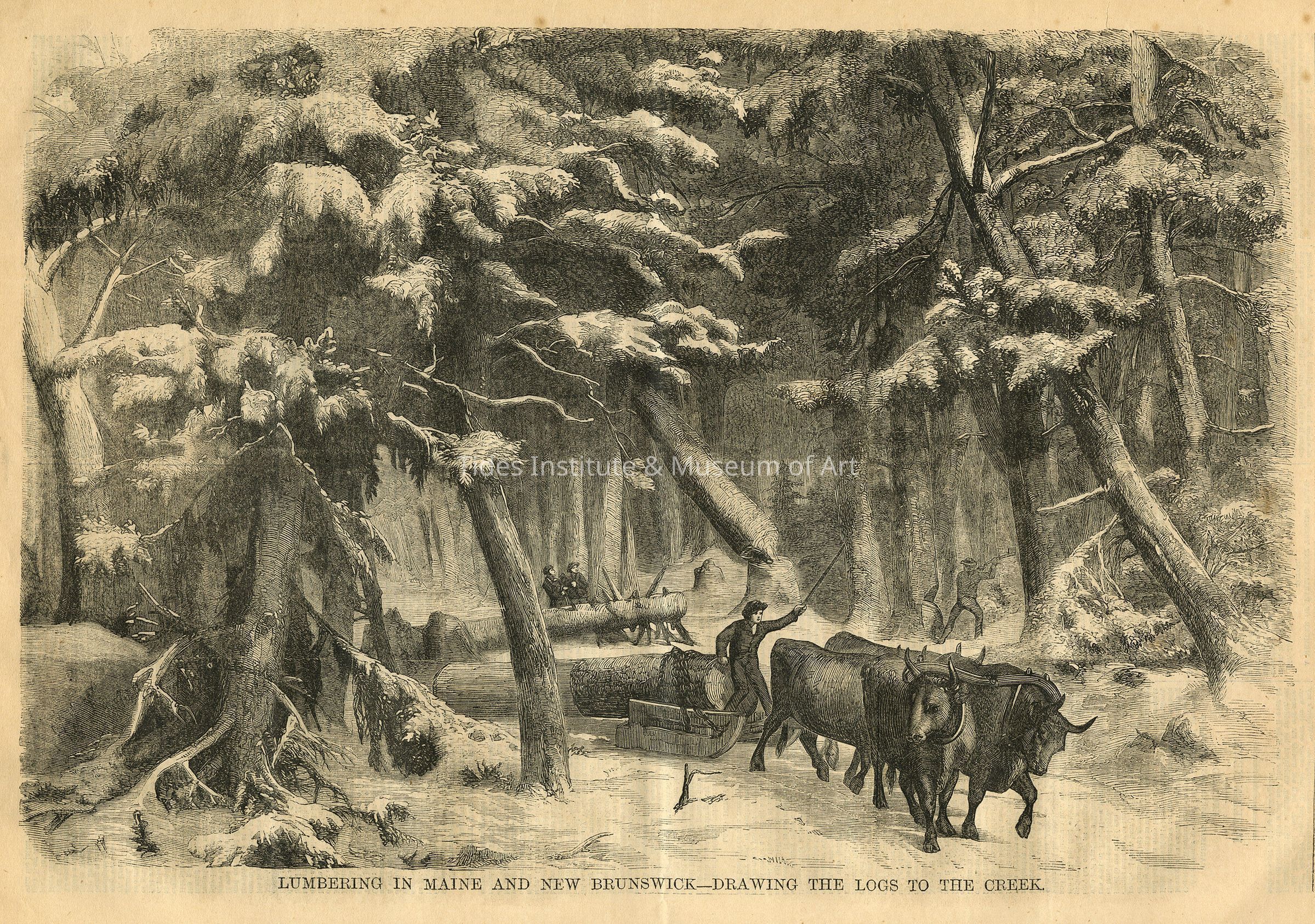 Lumbering in Maine and New Brunswick - Drawing the Logs to the Creek | 1858