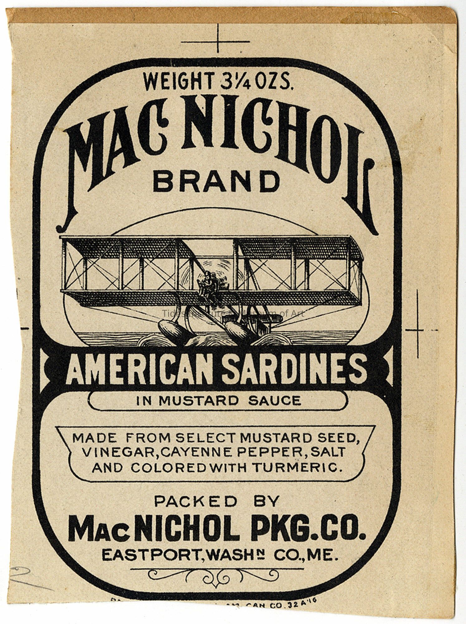 Old Accession Number: 822 Description: Packed by. MacNichol PKG.CO. Eastport, Washington Co., ME.