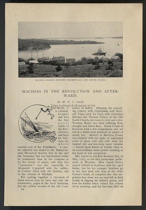 Machias in the Revolution and Afterward | M.E.C. Smith | New England Magazine: An Illustrated Monthly, New Series, Vol. 12, Old Series, Vol. 18, March, 1895 - August, 1895, pp. 673 - 688Description