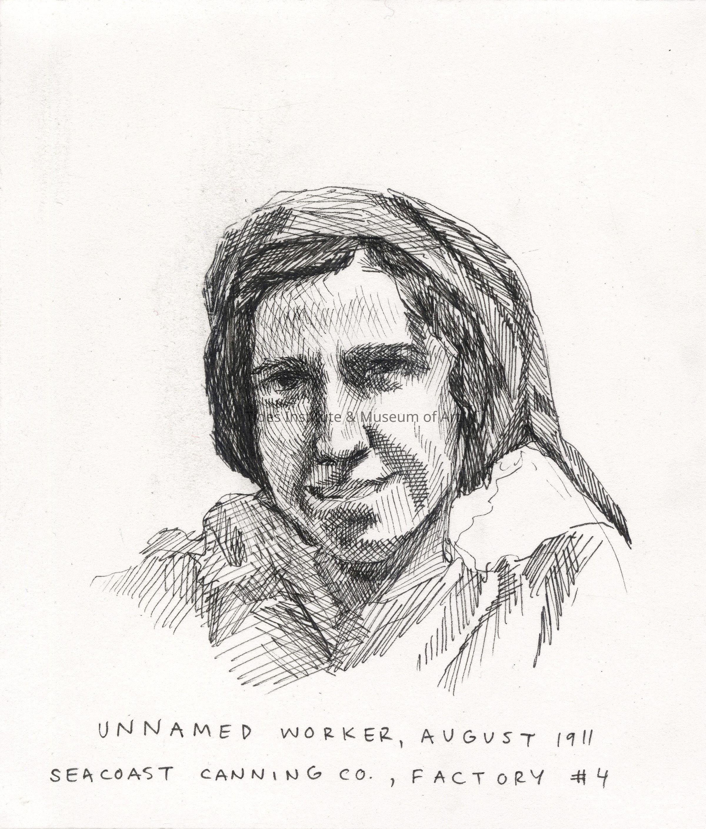 Maeve McCool | Unnamed Worker, August, 1911, Seacoast Canning Co., Factory #4 | Drawing, 2023Description