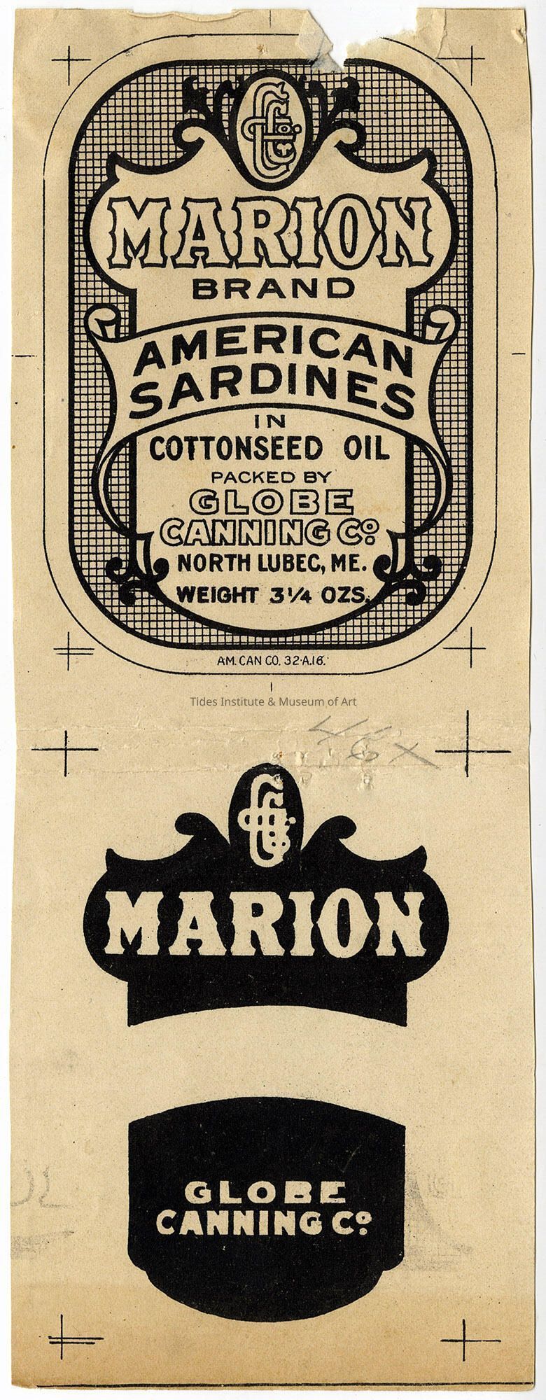 Old Accession Number: 828 Description: Packed by Globe Canning Co. North Lubec, ME.