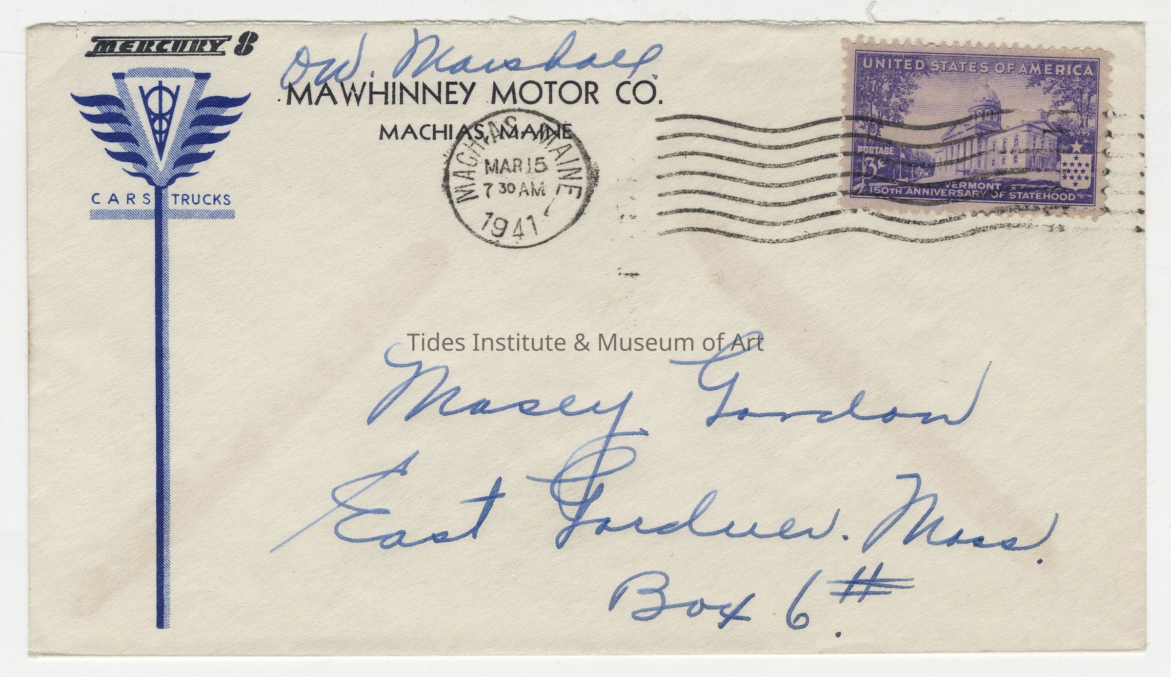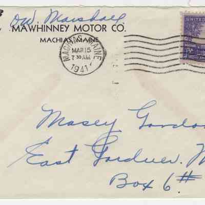 Mecury 8 Cars / Trucks | Mawhinney Motor Company, Machias, Maine | Envelope | 1941
