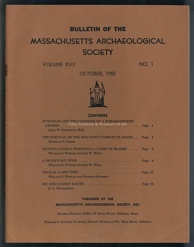 M'Teoulin and Two Versions of a Passamaquoddy Legend | Isaac W. Kingsbury | Bulletin of the Massachusetts Archaeological Society, Volume XVII, No. 1, October, 1955, pp. 1 - 3Description
