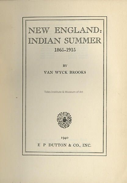 New England: Indian Summer, 1865 - 1915 | Van Wyck Brooks