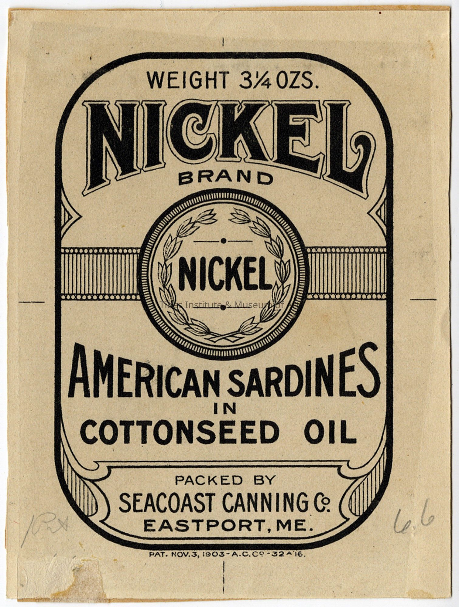 Old Accession Number: 830 Circa: 1903 Description: Packed by Seacoast Canning Co. Eastport, ME.