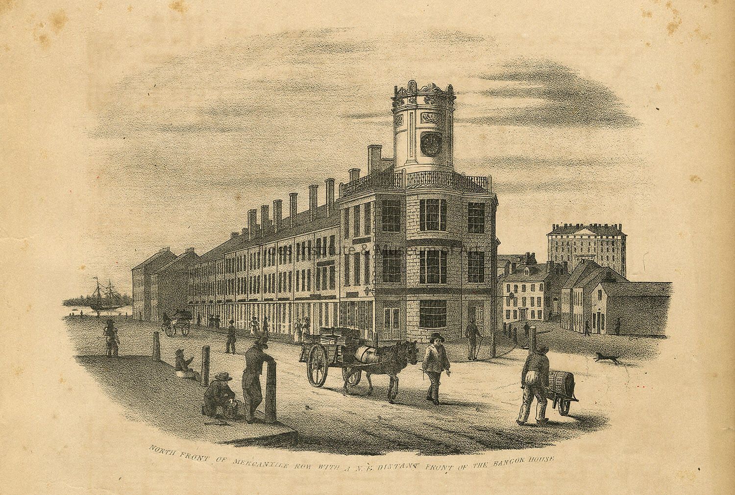 North Front of Mercantile Row with a N.E. distant Front of the Bangor House. From front of "Bangor March" musical score.