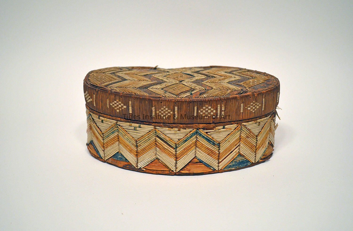 Artist: Unknown artist Classification: North American Basket Old Accession Number: 645 Description: Mi’Kmaq oval shaped quill box/basket. Middle Shelf.