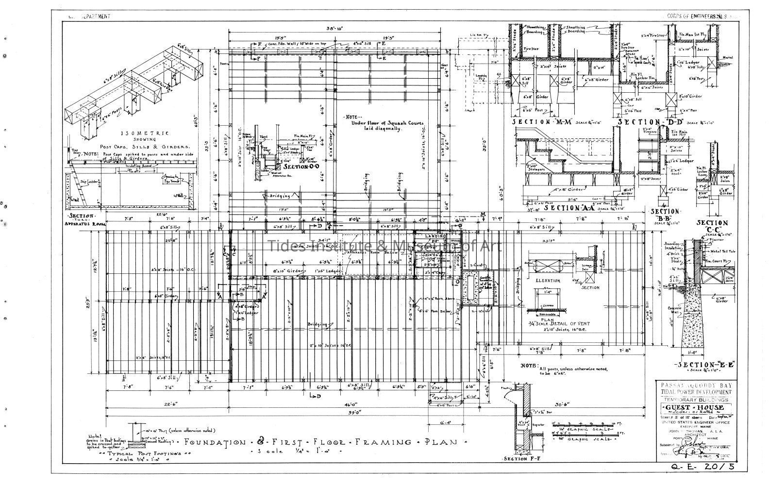 Passamaquoddy Bay Tidal Power Development | Temporary Buildings | Guest House | Foundation & First Floor Framing Plan | Q-E 20/5