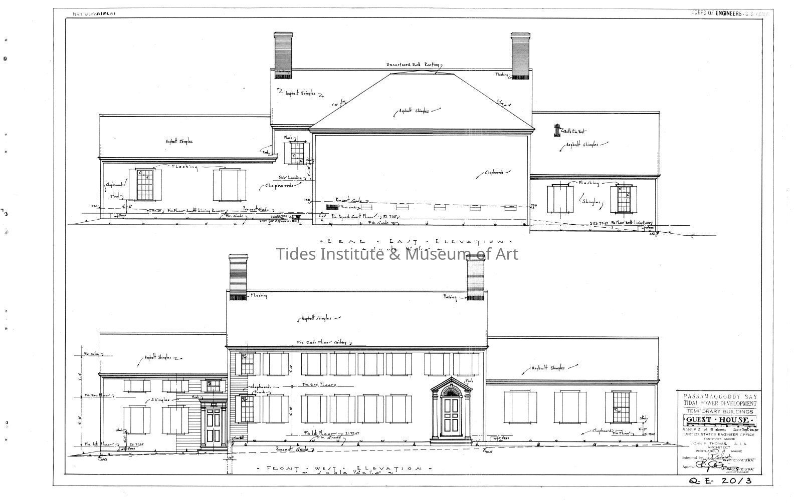 Passamaquoddy Bay Tidal Power Development | Temporary Buildings | Guest House | Rear East Elevation & Front West Elevation | Q-E 20/3