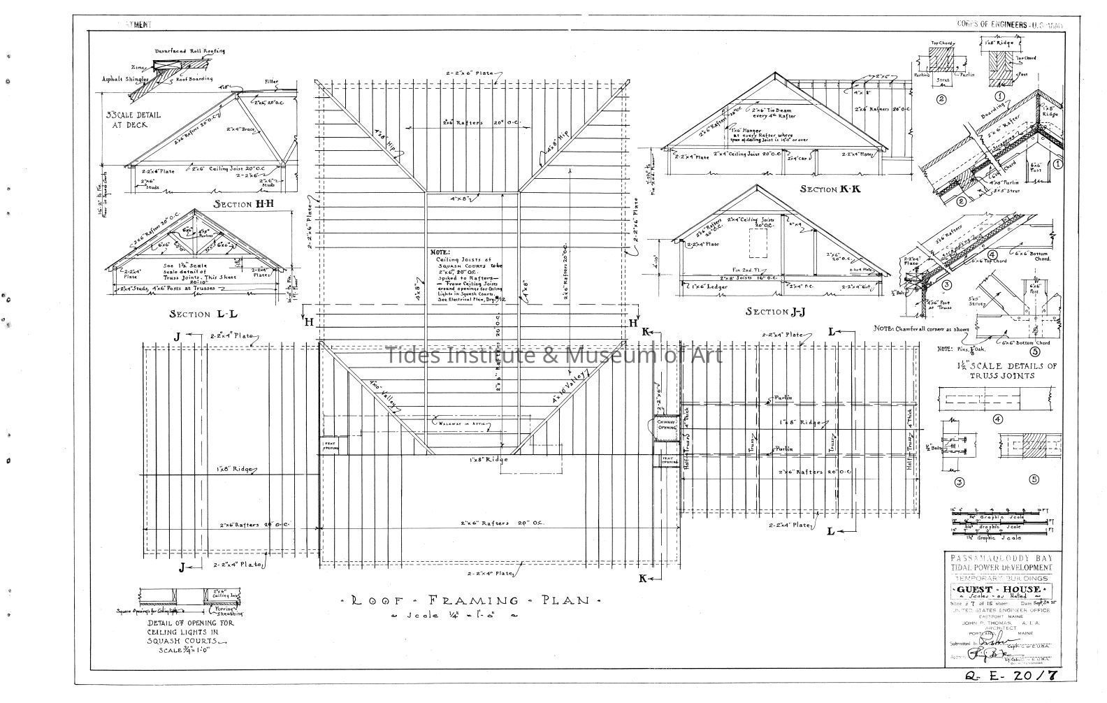 Passamaquoddy Bay Tidal Power Development | Temporary Buildings | Guest House | Roof Framing Plan | Q-E 20/7