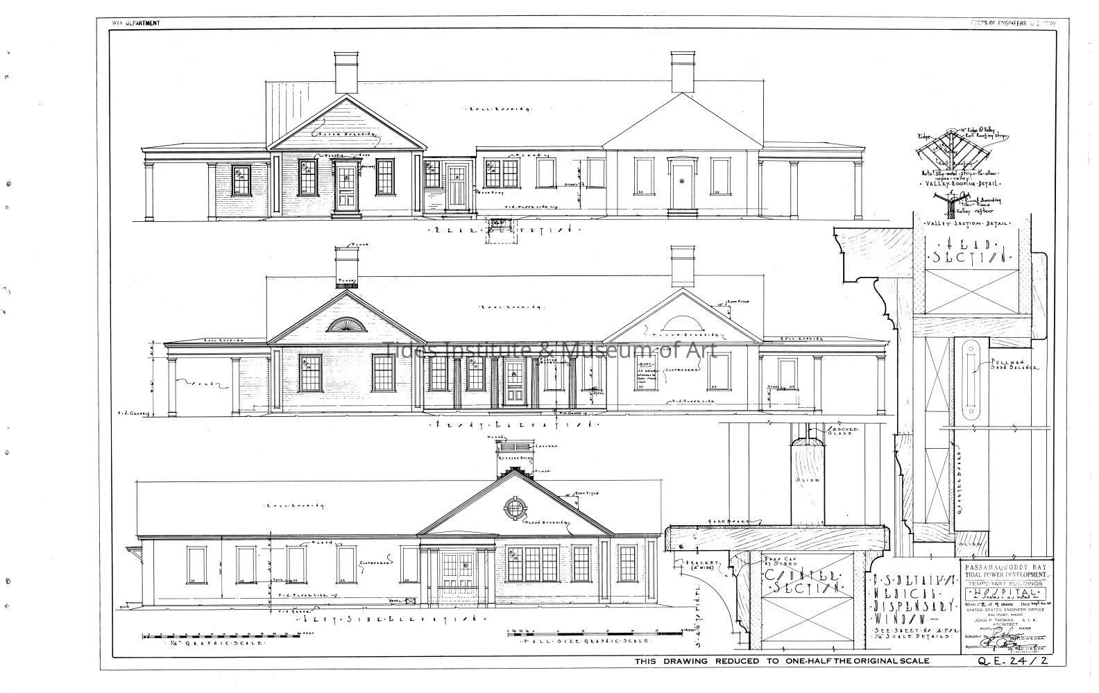Passamaquoddy Bay Tidal Power Development | Temporary Buildings | Hospital | Rear, Front & Left Side Elevations | Q-E 24/2