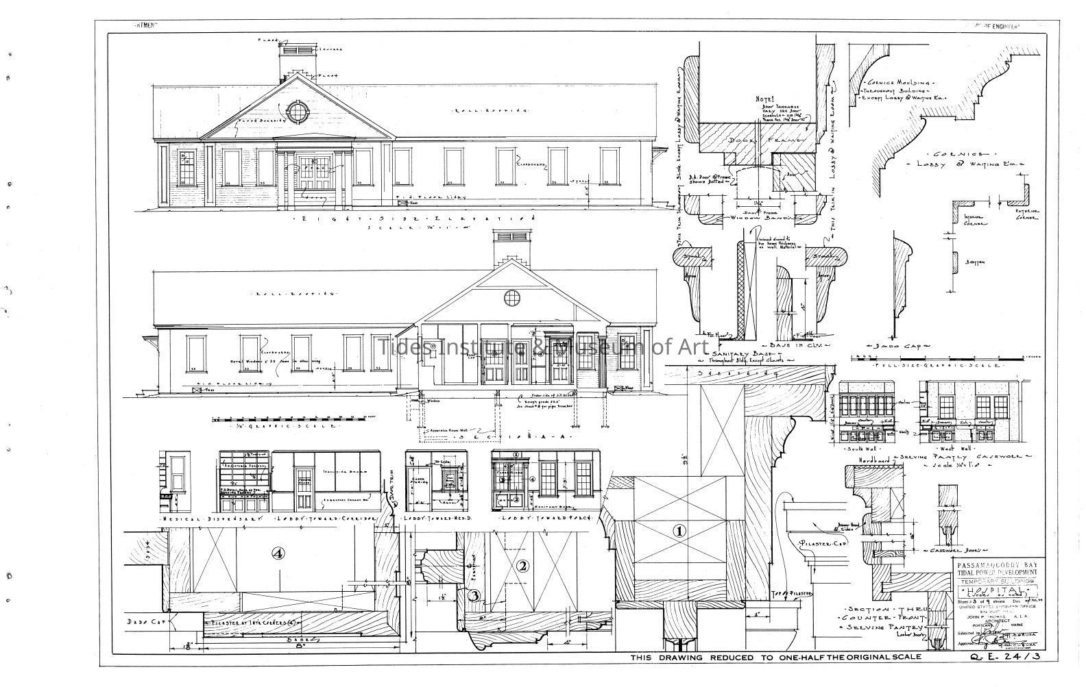 Passamaquoddy Bay Tidal Power Development | Temporary Buildings | Hospital | Right Side Elevations & Details | Q-E 24/3