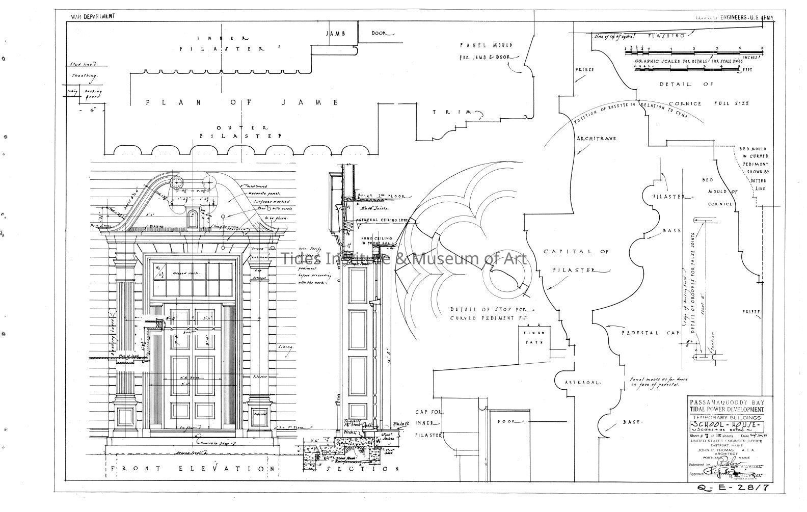 Passamaquoddy Bay Tidal Power Development | Temporary Buildings | School-House | Construction Details | Q-E 28/7