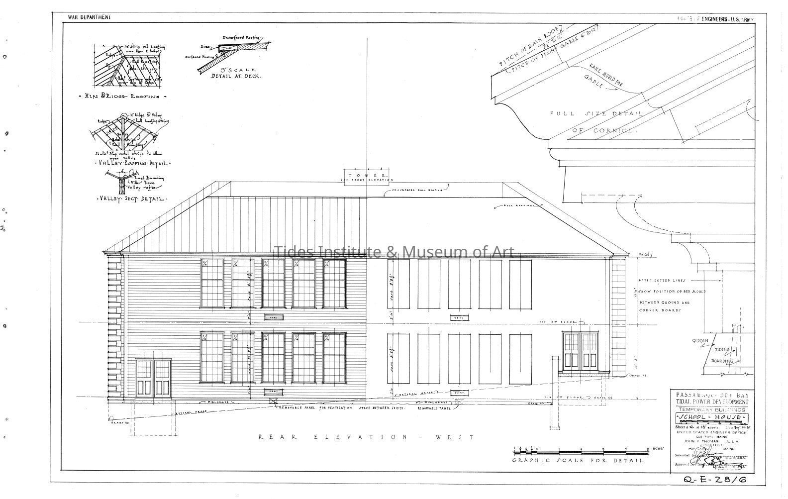Passamaquoddy Bay Tidal Power Development | Temporary Buildings | School-House | Rear Elevation - West | Q-E 28/6