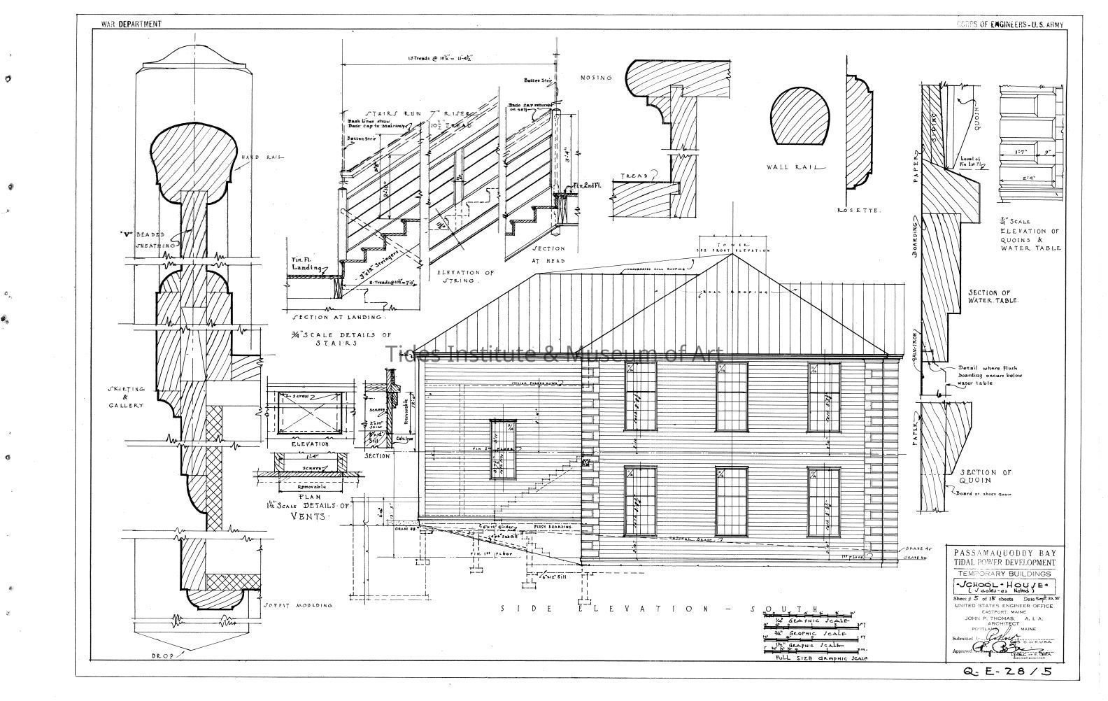 Passamaquoddy Bay Tidal Power Development | Temporary Buildings | School-House | Side Elevation - South | Q-E 28/5