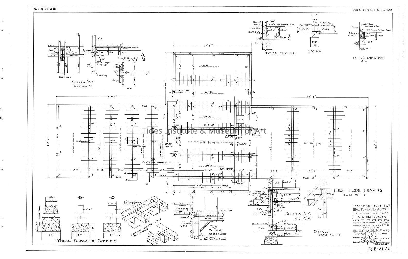 Passamaquoddy Bay Tidal Power Development | Temporary Buildings | Utilities Building | First Floor Framing | Q-E 21/6