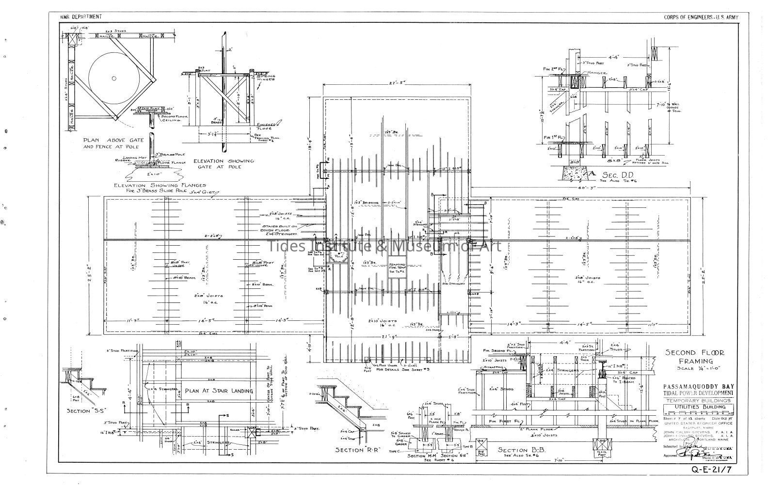 Passamaquoddy Bay Tidal Power Development | Temporary Buildings | Utilities Building | Second Floor Framing | Q-E 21/7