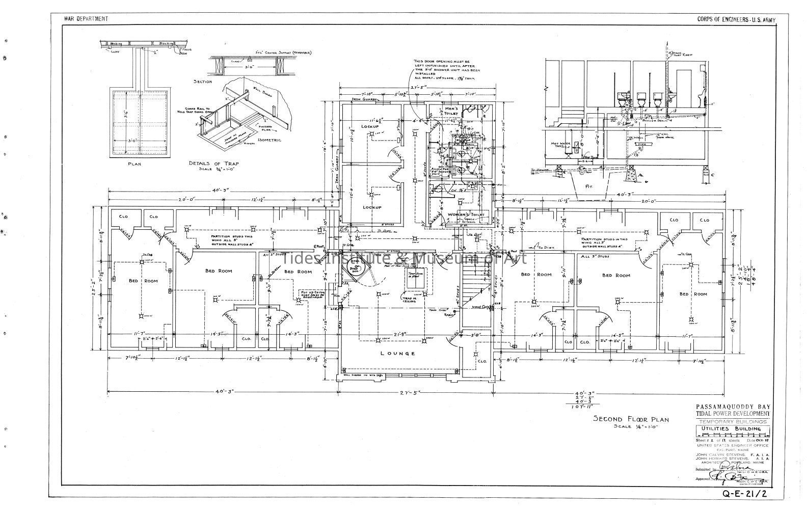 Passamaquoddy Bay Tidal Power Development | Temporary Buildings | Utilities Building | Second Floor Plan | Q-E 21/2