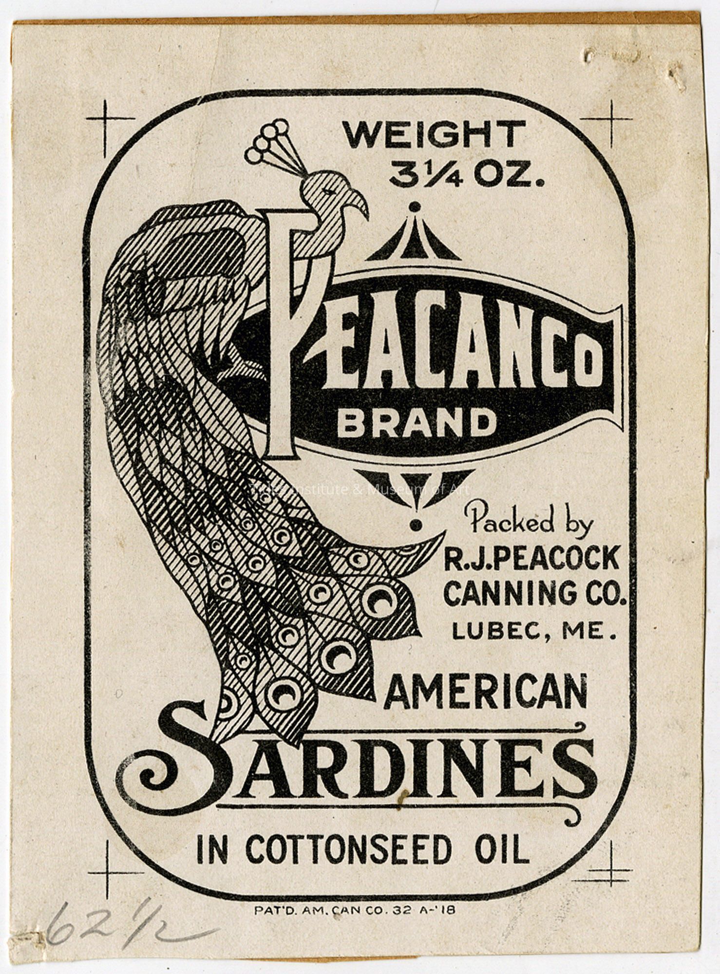 Old Accession Number: 842 Description: Packed by R.J. Peacock Canning Co. Lubec, ME. American