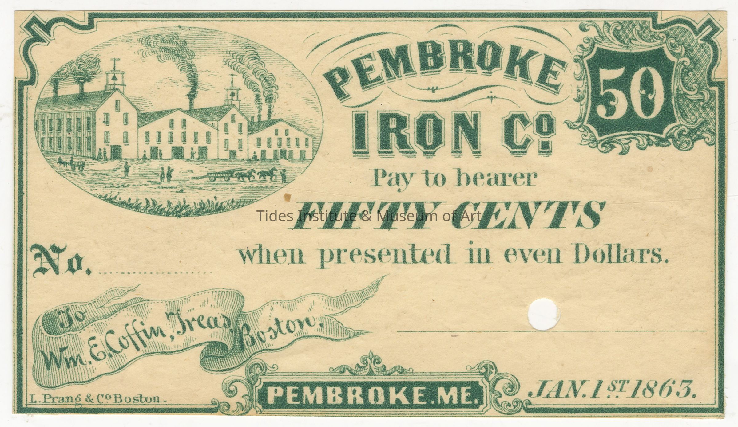 Pembroke Iron Company | Pembroke, Maine | Fifty Cents Scrip | 1865