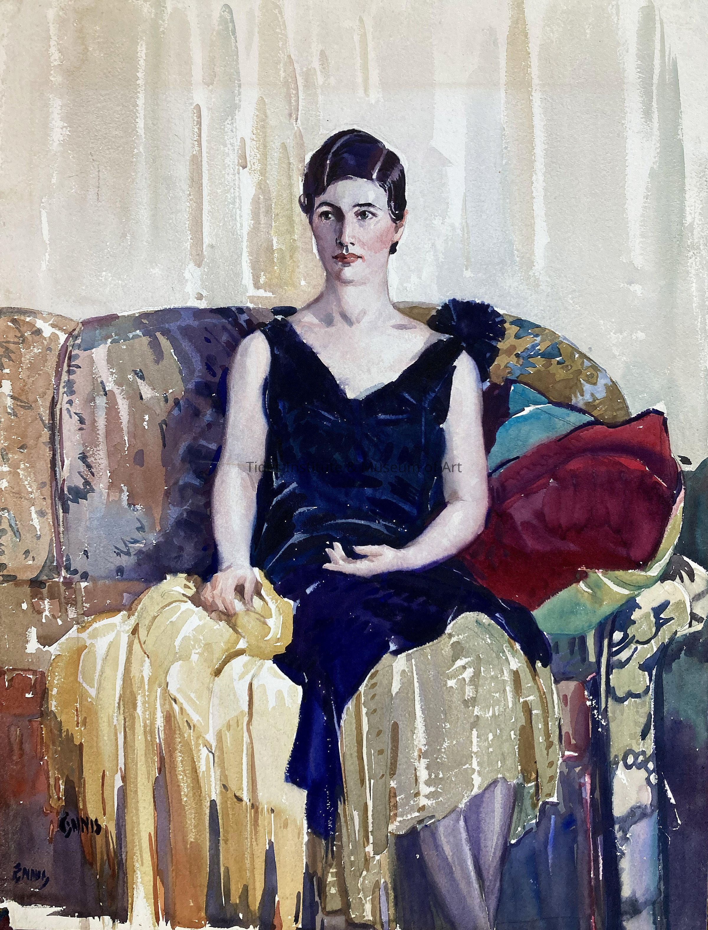 GLADYS ATWOOD, C.1930! Large watercolor (29" high and 22" wide) portrait of artist, Gladys Atwood, by her artist husband, George Pearse Ennis, that recently came into our collections. We discovered the watercolor in California. The couple married in 1928 in New York City and the notice in the New York Times was titled “Artist to Wed Artist.” They spent a number of summers in this region in the late 1920s and early 1930s associated with a summer art school here that Ennis directed that was based out of New York City. They had a summer cottage on nearby Meddybemps Lake. In September, 1936 following the end of that year’s summer school session here, the couple were driving in upstate New York and became involved in a car accident. Ennis was killed, but Atwood survived. Without Ennis, the summer art school came to an end.