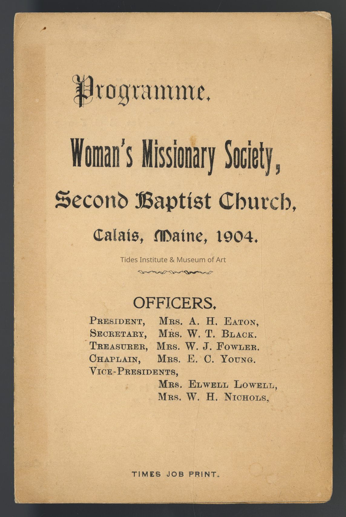 Programme Booklet, Woman's Missionary Society, Second Baptist Church, Calais, Maine, 1904
