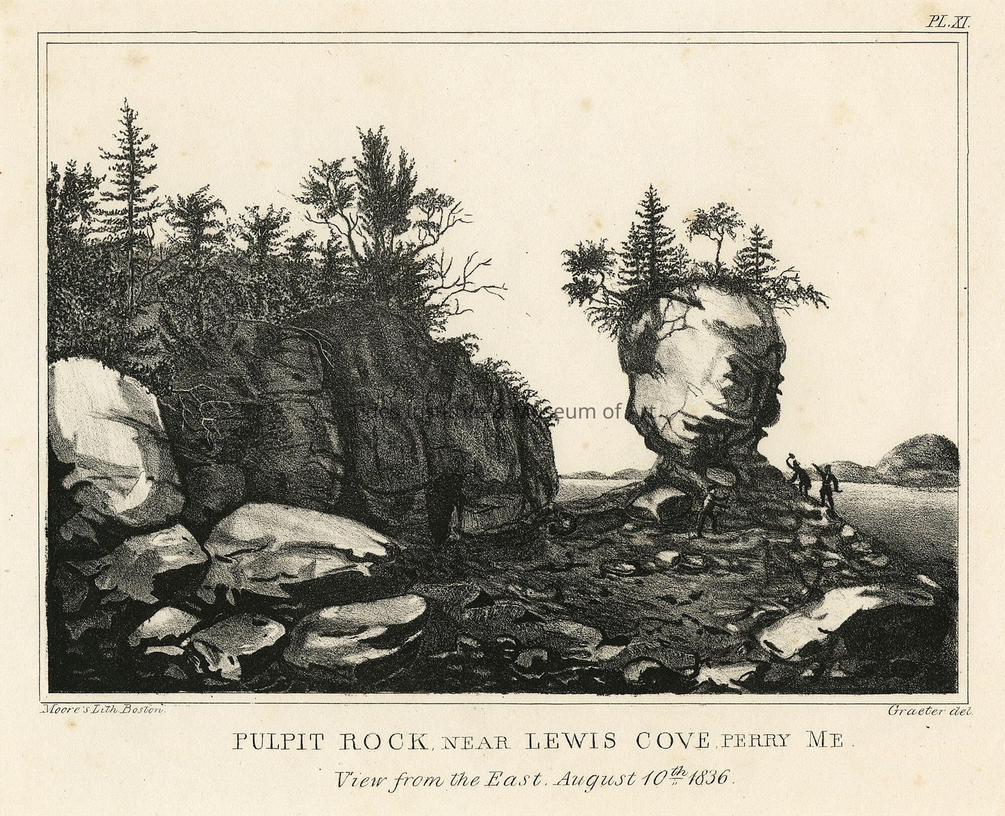 Pulpit Rock near Lewis Cove Perry Me View from the East August 10th 1836. | Moore’s Litho Boston