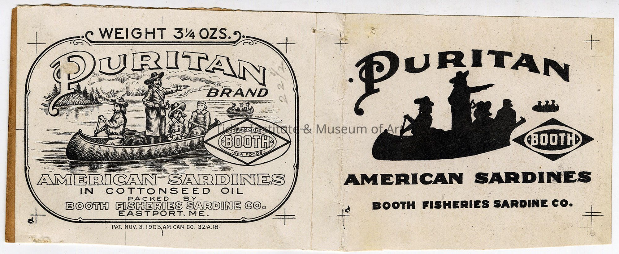 Old Accession Number: 840 Circa: 1903 Description: Packed by Booth Fisheries Sardine Co. Eastport, ME.