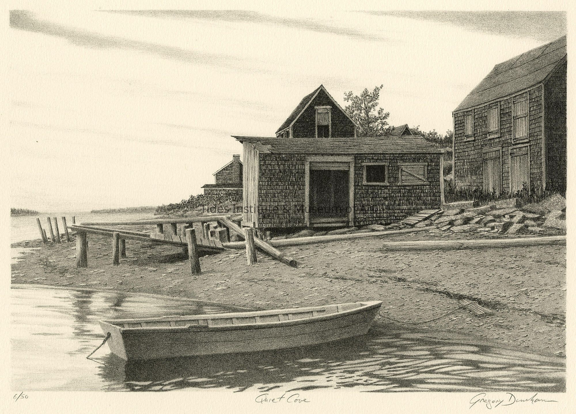 602. Gregory Dunham. Quiet Cove (Eastport, Maine). Lithograph. 6/50. 1986. Printed by Paul M. Maguire. Paper: Arches. Ink: HANCO BK-8035.