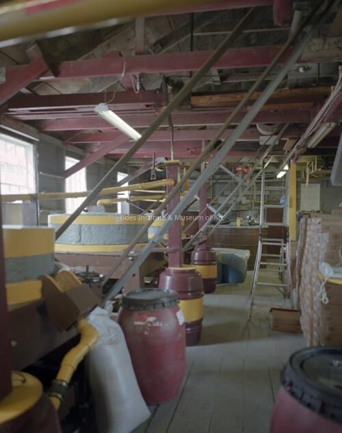 63) Raye's Mustard Mill Rte. 190, Washington Street. In 1903 John W. Raye established a mustard mill next to the less than five-year-old railroad tracks on Washington Street, near the railyard. John came from a family of sea captains, some of them schooner skippers to the Magdalene Islands. Sardine packing was a big business at this time and mustard became one of the most popular packs for the sardines. John Raye saw the opportunity for the mustard to be shipped in barrels by schooner and the railroad to other sardine-packing communities. The mill is the last mustard mill using granite grindstones in business today.