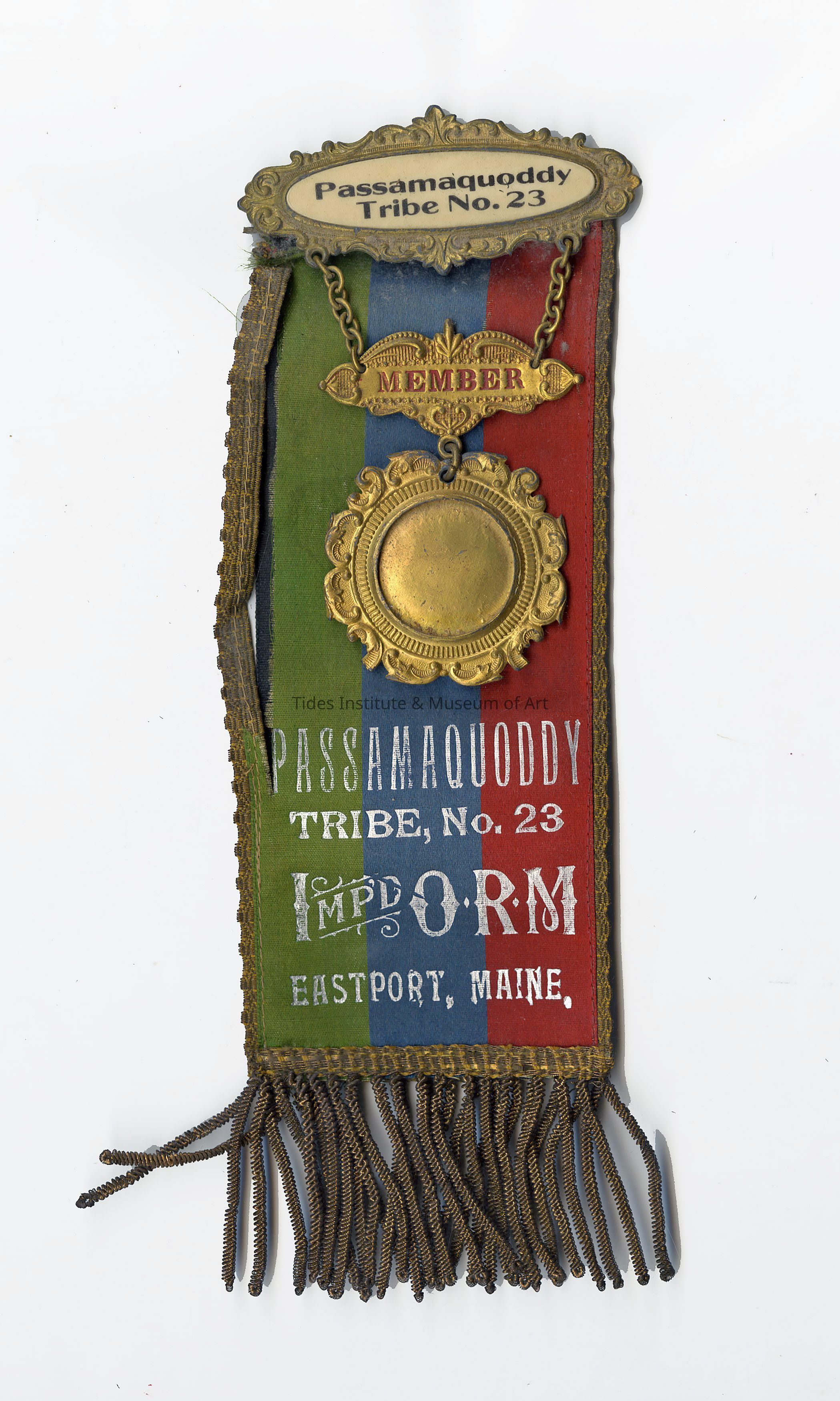 Ribbon | Passamaquoddy Tribe, No. 23, Impd. O.R.M. [Improved Order of Red Men], Eastport, Maine