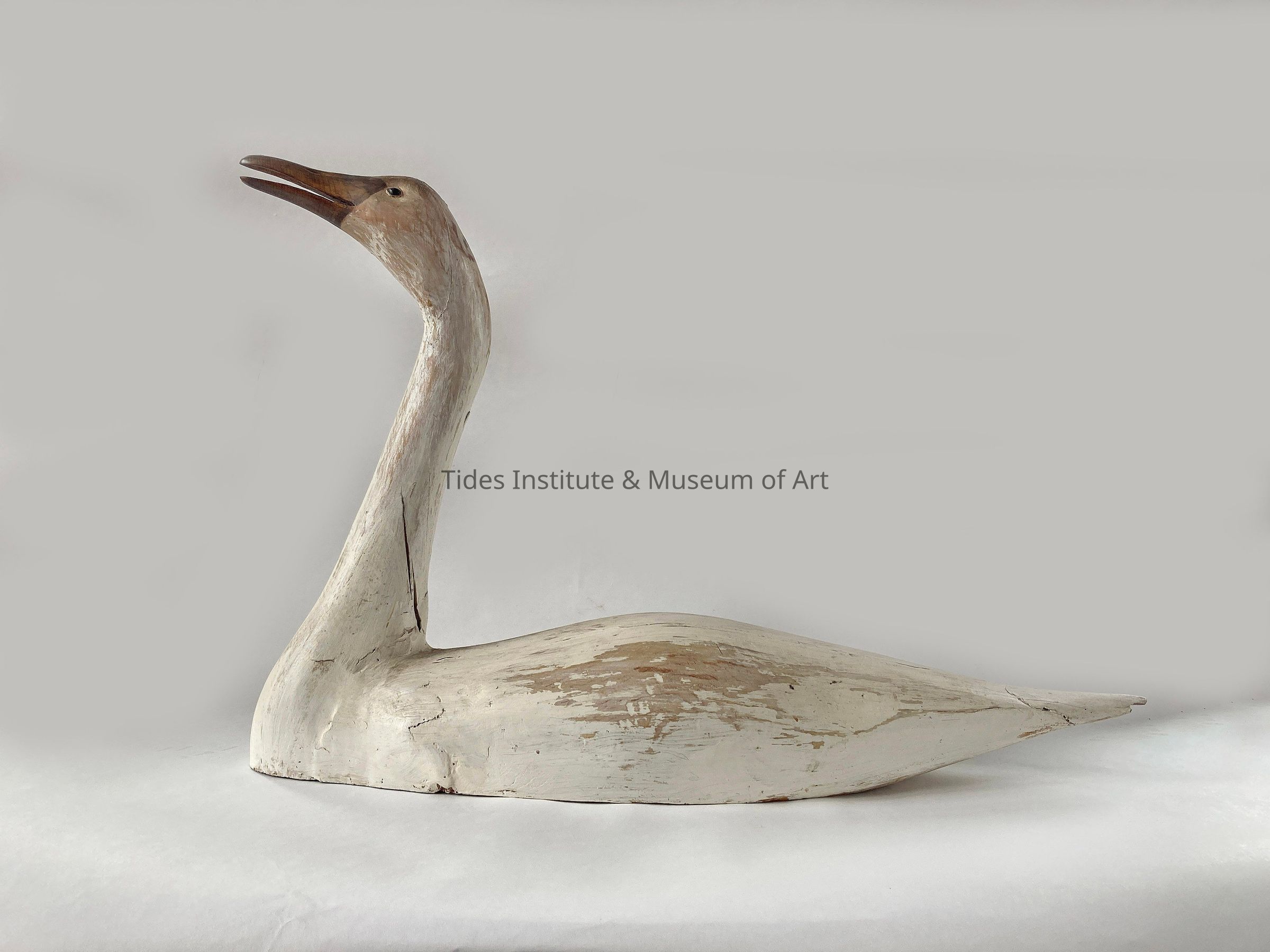 Wooden swan carved by Robert Stark of Machiasport, Maine, c.2000. Gift of Holly Garner-Jackson of Machias, Maine.