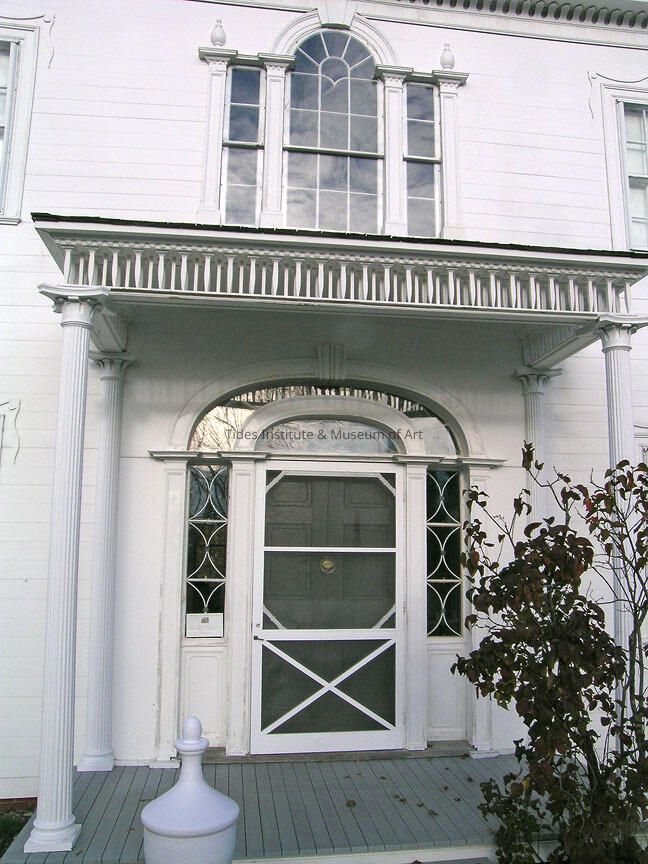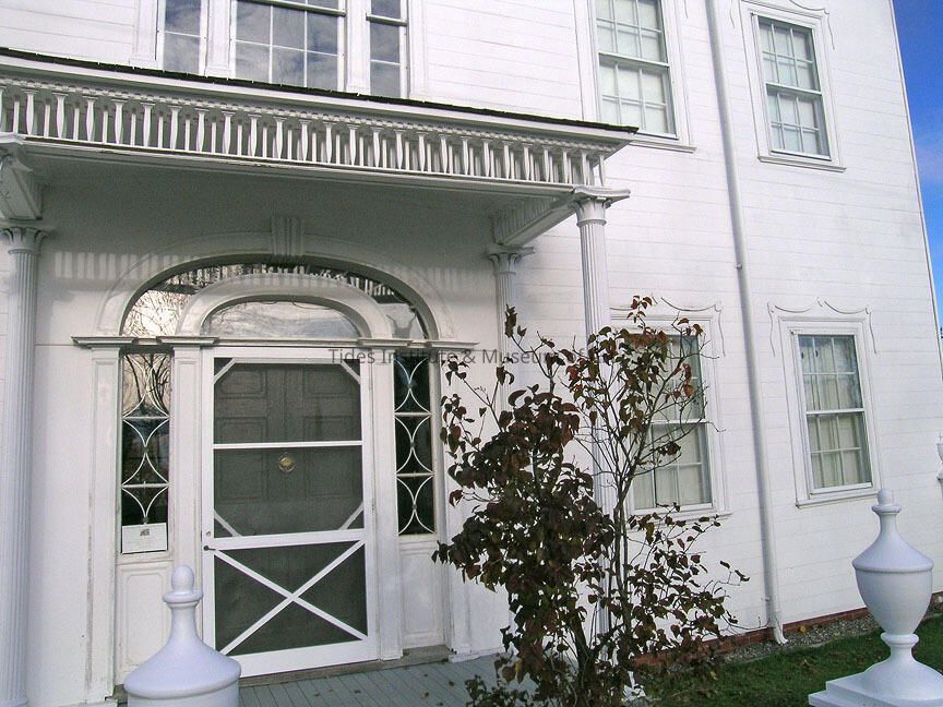 Thomas Ruggles came to Columbia Falls in 1770 from Rochester, Massachusetts, and eventually became the largest owner of timberland in the area. He also owned a saw mill, was the postmaster, general store keeper, shipbuilder and Chief Justice of the Court of Sessions at Machias. Judge Ruggles brought Aaron Sherman and Alva Peterson from Duxbury, Massachusetts to build his house for him; Mr. Sherman was the master builder. There are two theories as to who was responsible for the elaborate woodwork, one being that Judge Ruggles hired a fine wood carver from England, and the other more feasible explanation that Alva Peterson, a master craftsman and ship carpenter, completed the intricate molding and woodwork on the interior and exterior of the house. This Federal style home is only one room deep. It was completed in 1820, and originally had an ell on the back of the house which was removed in 1938 due to its poor condition. Judge Ruggles died soon after the completion of his residence. The house is know for its flying staircase and the fine wood carving, and has a semielliptical fanlight crowning the doorway. The Ruggles House is on the National Register of Historic Places, and is open to the public as a museum. The Ruggles House Society of Bar Harbor was formed in 1949 to restore the house and open it to public display. It is open all summer. DH, AFN, JCB