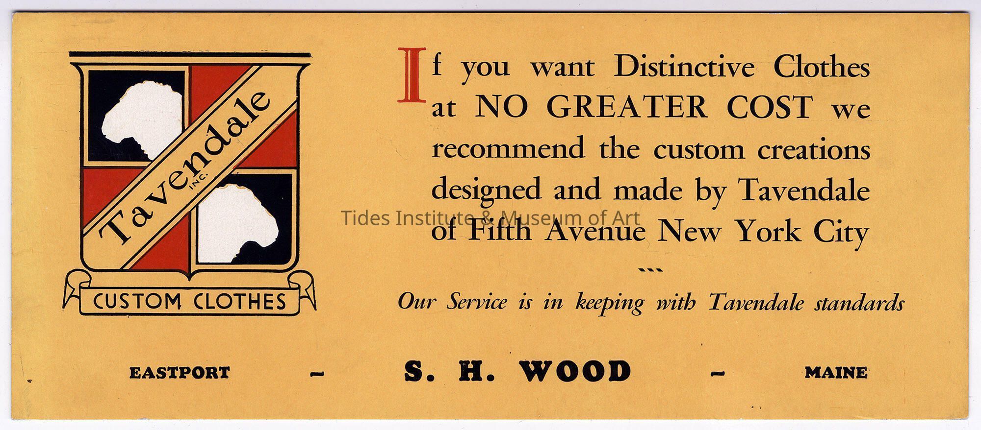 Classification: Prints Circa: 1920 Old Accession Number: 1781 Description: Tavendale Custom Clothes