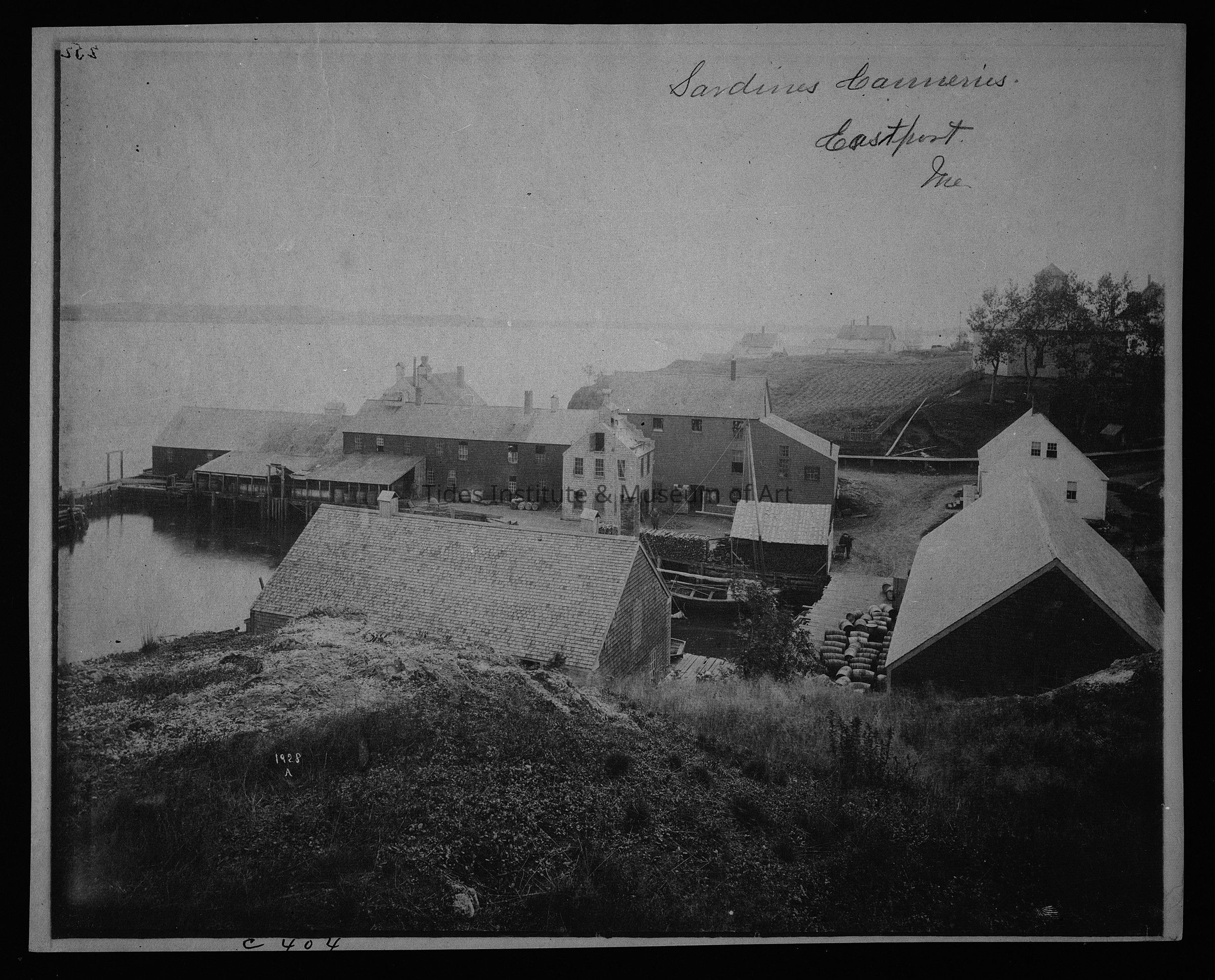 Little's Cove, Eastport, Maine with Martin & Caraher sardine factory. Multi-sided Gasworks building can be seen in background right. National Archive Number: 22-CD-404