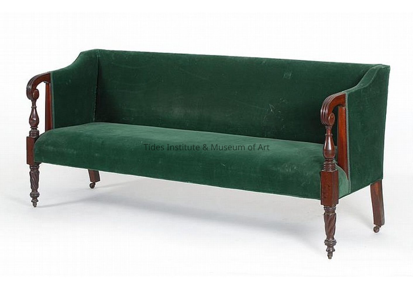 Old Accession Number: 2281 Sheraton Sofa, c.1820. Gift from Gregory Noyes, 122 Water Street, Eastport, Maine. From Grady House, 1 Adams Street, Eastport, Maine.