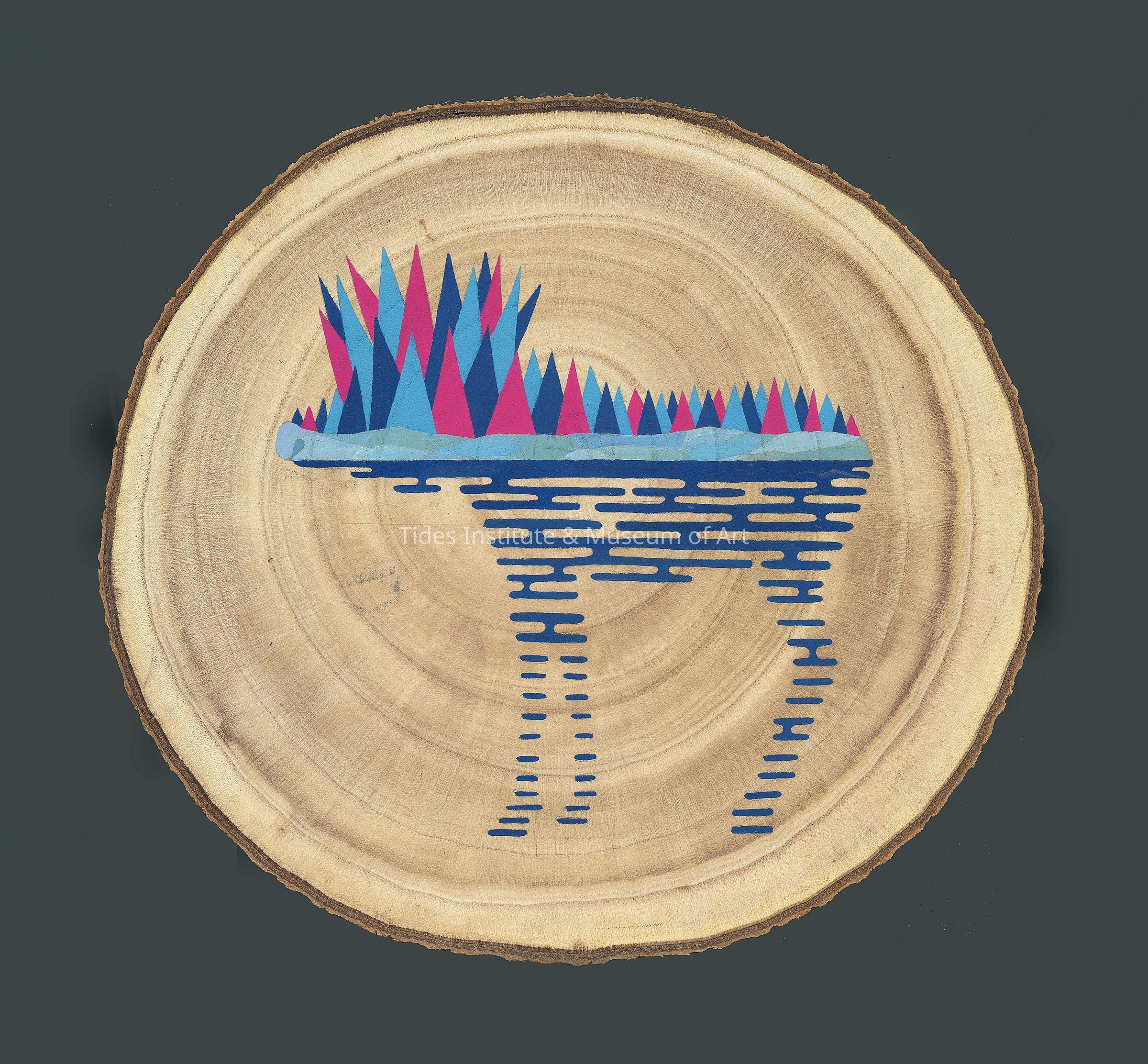 Painting on Log Cross Section Gift of the Artist, 2024. Siena Baldi was a StudioWorks Artist-in-Residence at the Tides Institute & Museum of Art in 2023.