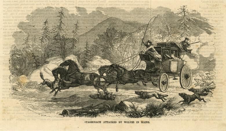 Stagecoach Attacked by Wolves in Maine [Airline Road] | 1858Description