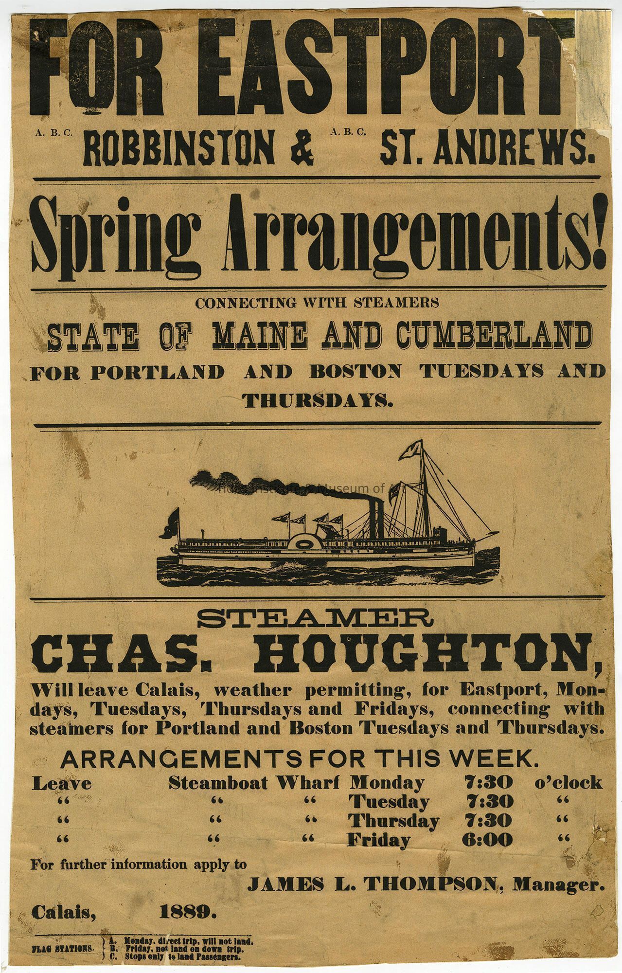 Steamer Chas. Houghton - For Eastport, Robbinston and St. Andrews - Spring Arrangements